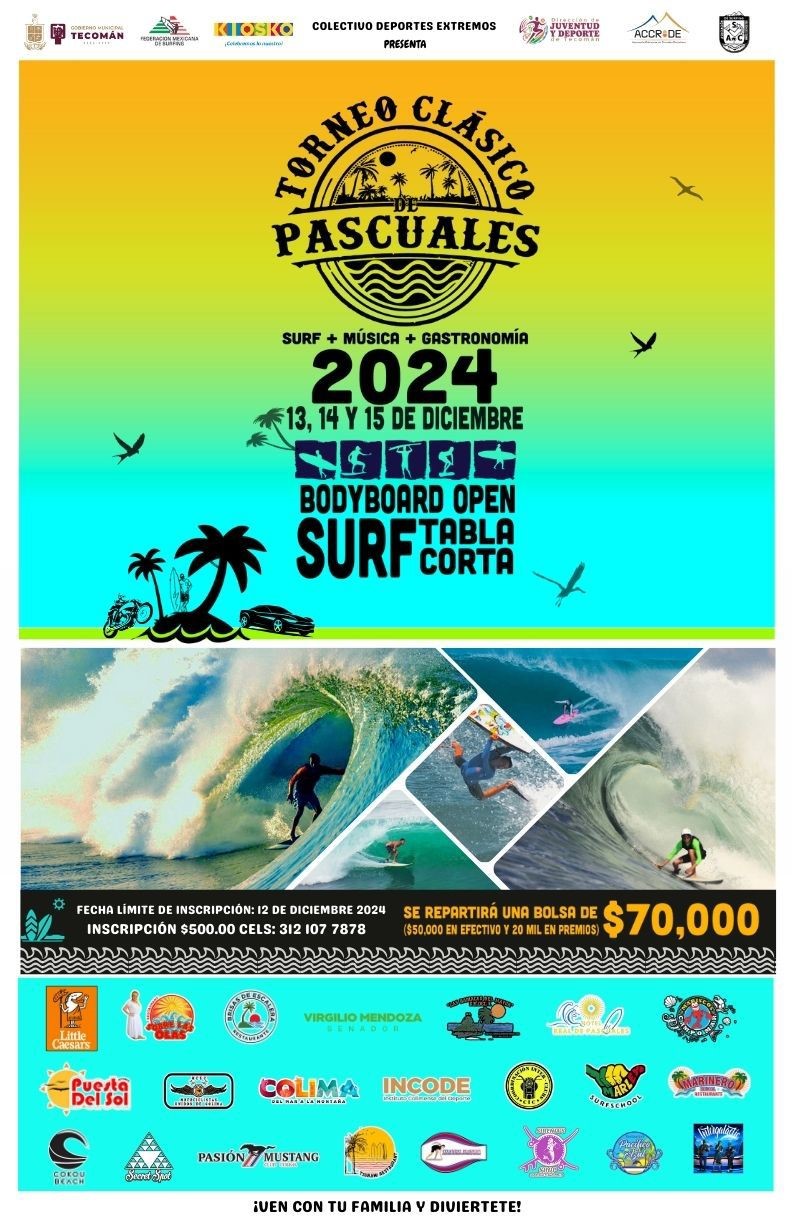 Armando Reyna hizo referencia que el surfista olímpico y orgullosamente tecomense, ha sido pieza fundamental para promover aún más la ya reconocida playa, por lo que se espera que en este Torneo Clásico de Pascuales asistan las nuevas generaciones de surfistas locales, aficionados y comprometidos de todo el mundo, además de los deportistas destacados que competirán en diferentes categorías.