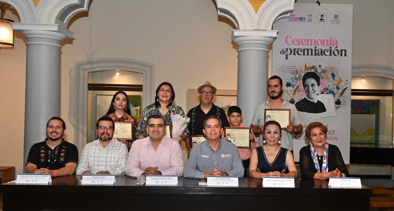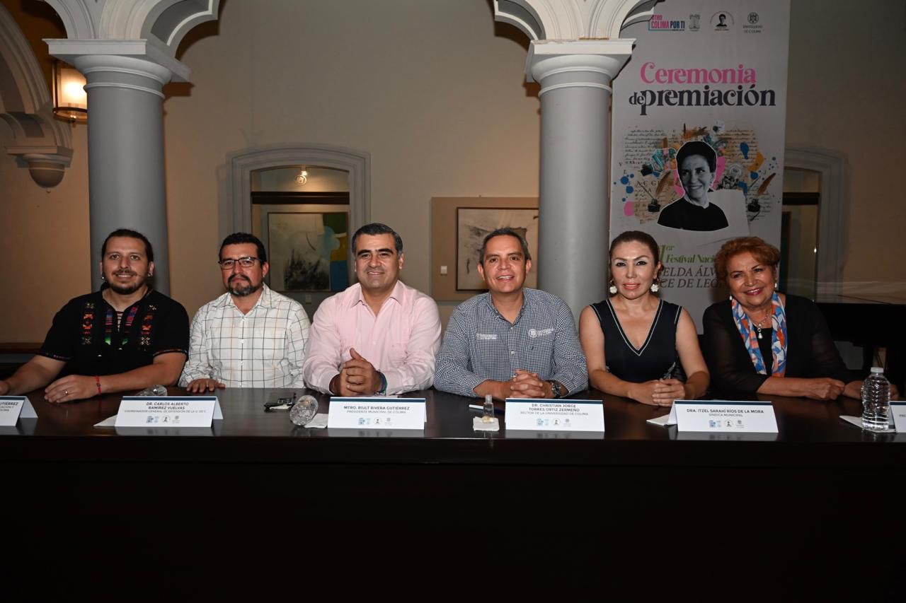 Con el objetivo de reconocer el talento literario y creativo de participantes de distintas edades y regiones del país, se llevó a cabo la entrega de galardones del Primer Festival Nacional Griselda Álvarez Ponce de León, acto encabezado por el presidente municipal de Colima, Riult Rivera Gutiérrez; el rector de la Universidad de Colima, Christian Jorge Torres Ortiz Zermeño, y la coordinadora del Colectivo Griselda Álvarez, Pastora Ferraez, en el Salón Vitral de la Pinacoteca Universitaria.