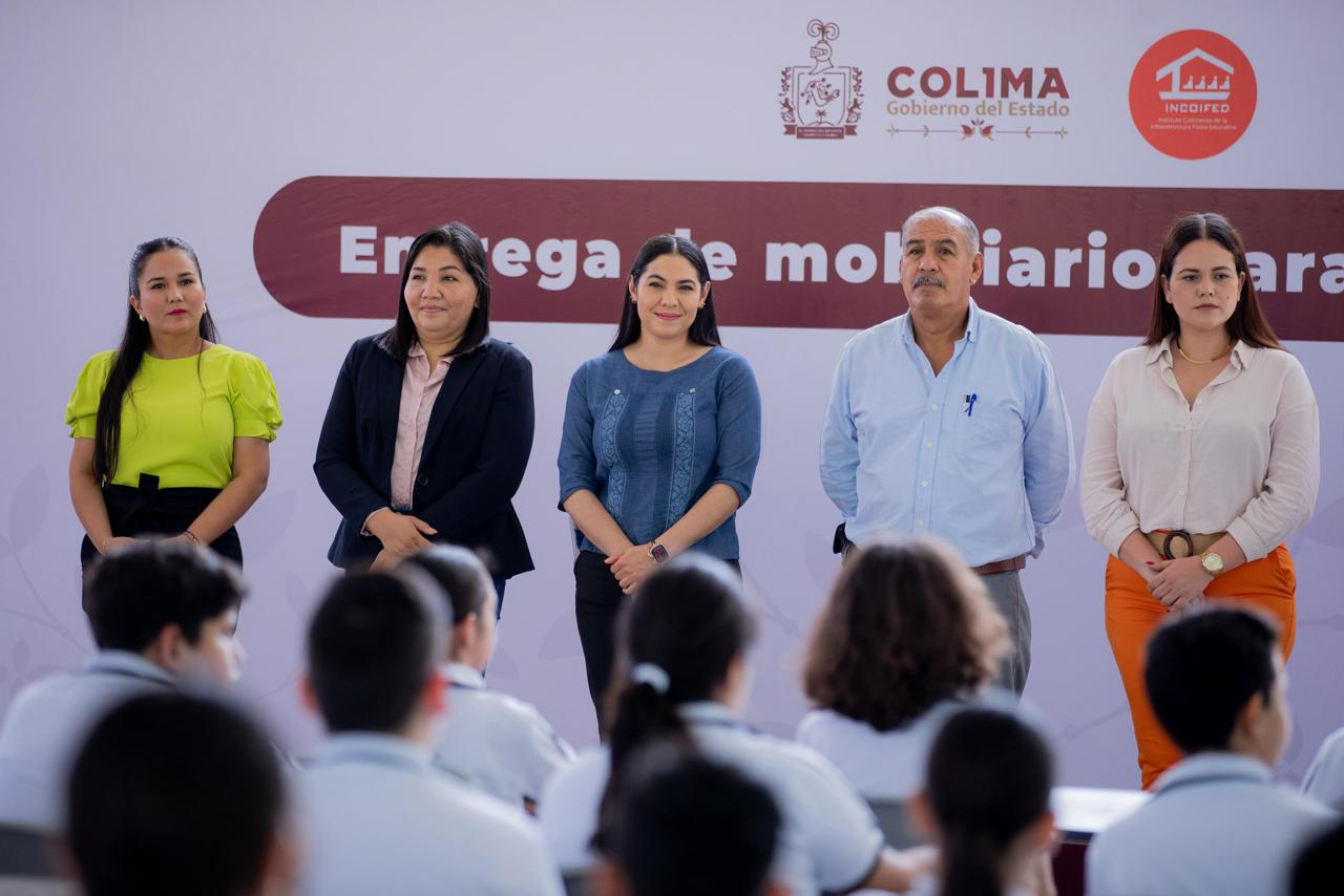 Este jueves, la gobernadora Indira Vizcaíno Silva entregó mobiliario (cien butacas) a estudiantes de la escuela secundaria ‘Enrique Corona Morfín’ en el municipio de Colima; aseguró que han ido renovando los muebles de instituciones educativas en la entidad, sobre todo en aquellas que está aumentando el número de alumnado o que ya tenían muchos años con las mismas sillas o mesas, como es el caso de maestras y maestros.