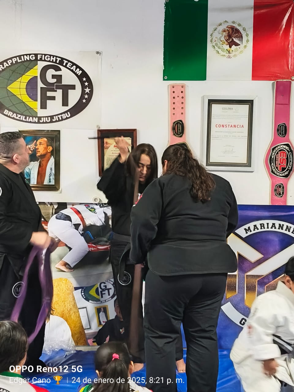 En el marco del décimo aniversario de la academia de Jiujitsu GFTeam México Titanes, la head coach, Marianne La Osa Gaviño es promovida a cinturón café siendo la primera mujer colimense en tener este grado en dicho deporte.