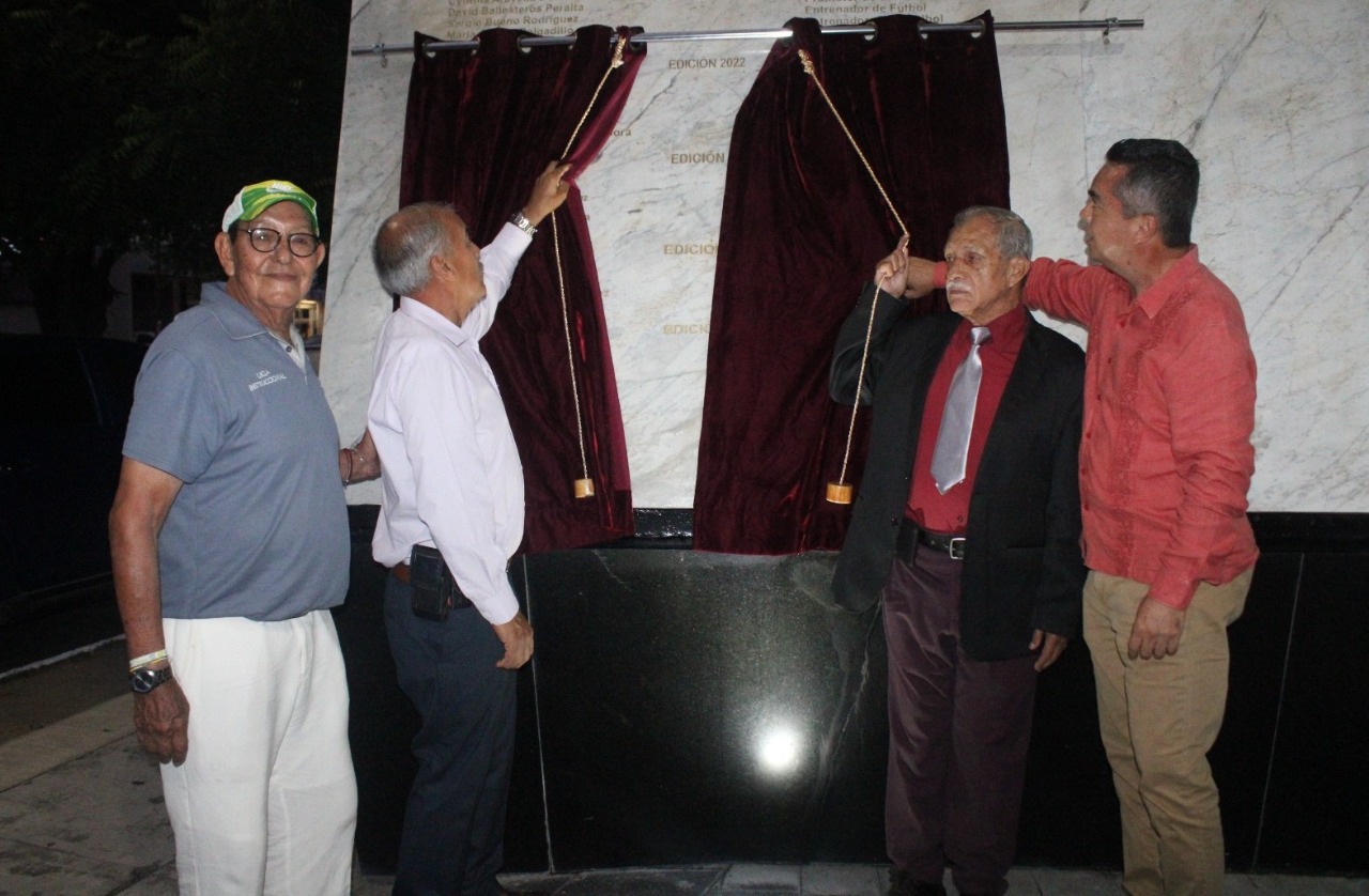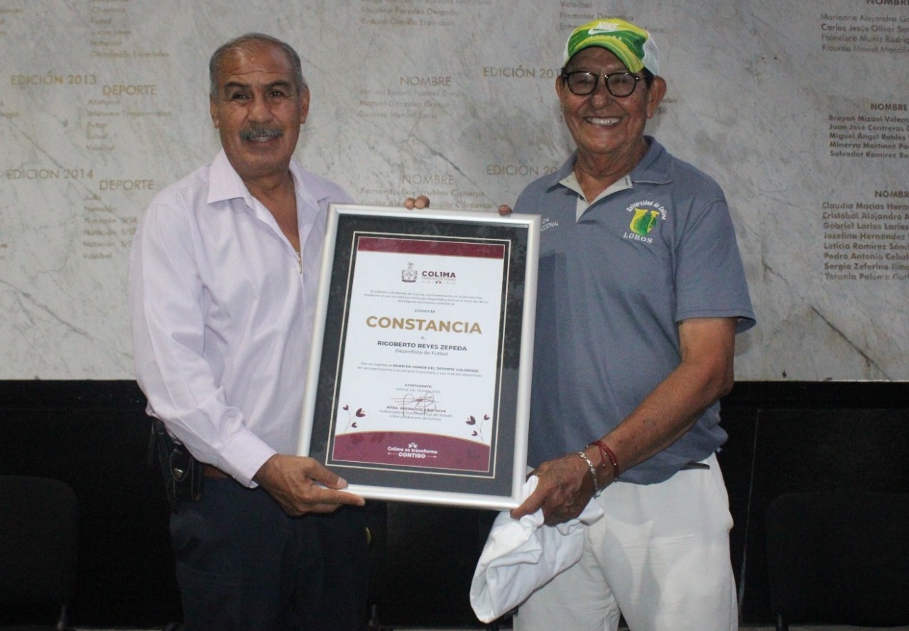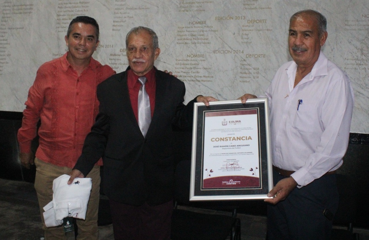 En representación de la gobernadora Indira Vizcaíno Silva, el secretario de Educación y Cultura del Gobierno del Estado de Colima, Adolfo Núñez González develó los nombres de los ex futbolistas José Ramón Cano Anguiano y Rigoberto Reyes Zepeda, los cuales fueron inscritos con letras doradas en el Muro de Honor del Deporte Colimense.