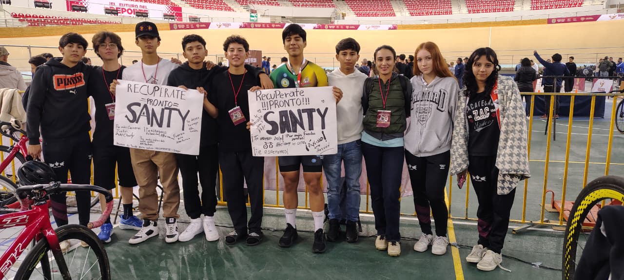 Al final de la jornada, los chicos y chicas de Loros, compartieron mensajes de aliento a su compañero ciclista, Santiago Jiménez Ortega, deseando su pronta recuperación, después de haber sufrido un accidente, cuando se dirigía a uno de sus entrenamientos, que lo dejará fuera por algunos meses, seguros de que regresará con mayor fuerza.