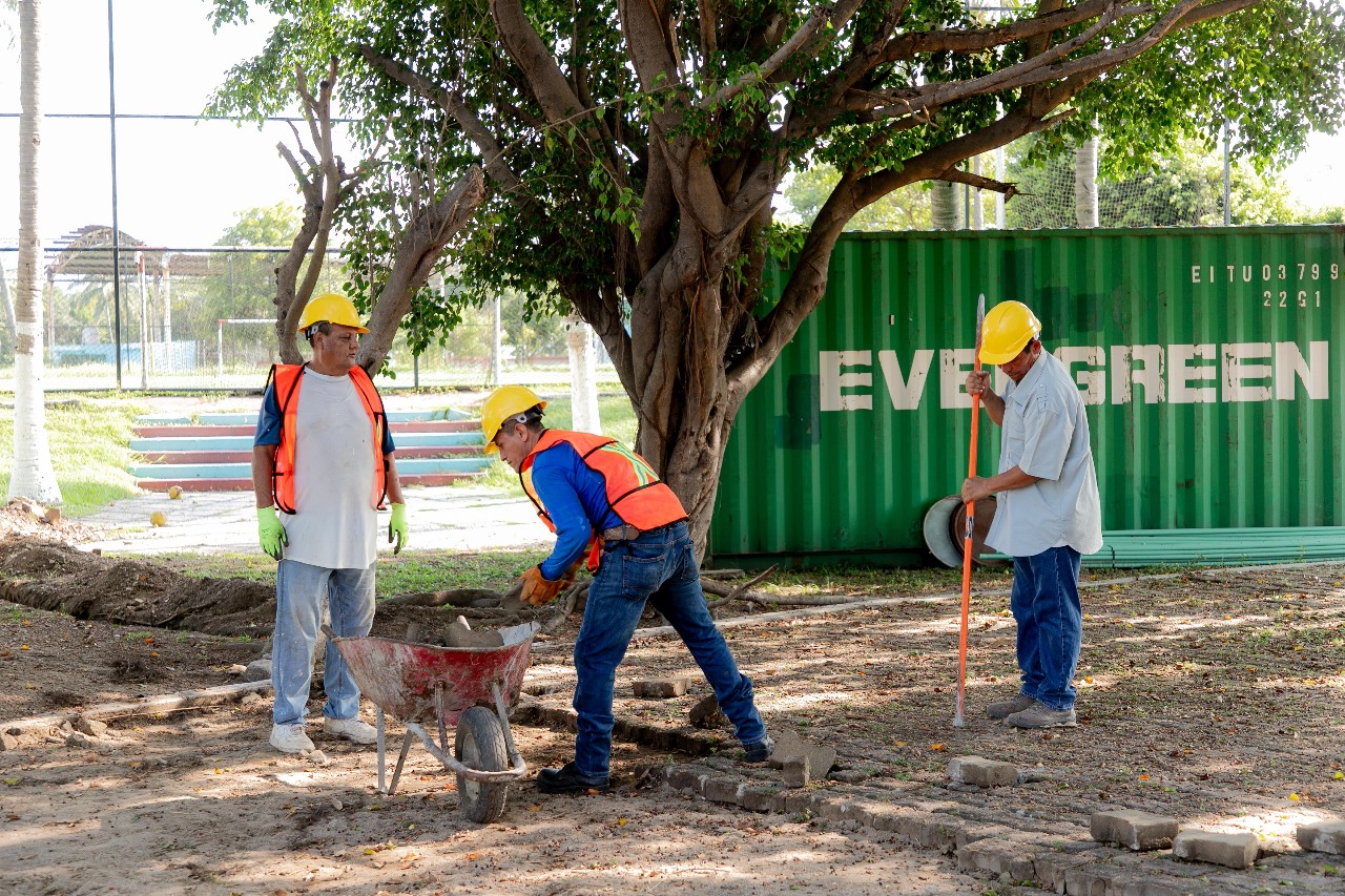 En este inmueble se están interviniendo 7.2 hectáreas, cuyos trabajos incluyen la rehabilitación eléctrica y el alumbrado, el área de ingreso, el campo de futbol, así como diversos espacios deportivos, obra exterior, además de la construcción de un nuevo estacionamiento, dos canchas de usos múltiples, un petpark (parque para perros) y cancha de voleibol de playa.