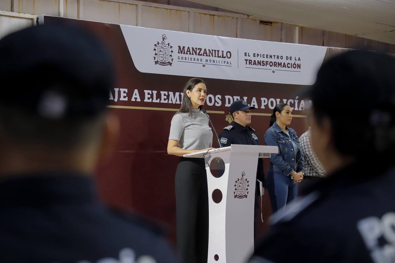En su oportunidad, Rosi Bayardo dijo a las y los policías que desde el Ayuntamiento de Manzanillo se trabaja con intensidad para mejorar sus condiciones laborales y se esforzarán para que puedan contar con el equipo, vehículos, capacitación y todo lo necesario para que puedan realizar su trabajo de la mejor manera.
