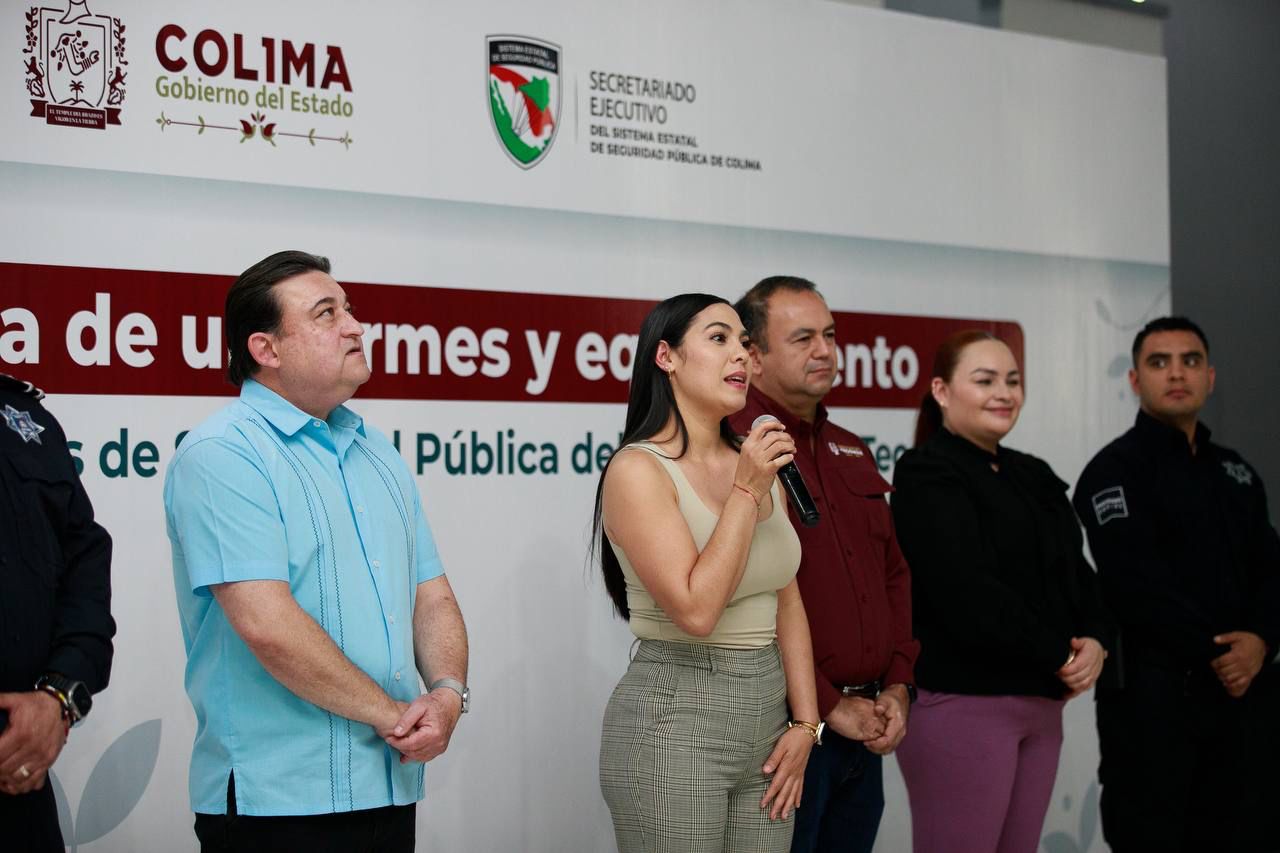 Este martes, la gobernadora del estado de Colima, Indira Vizcaíno Silva, entregó en eventos por separado uniformes y equipo a policías municipales de Armería y Tecomán, con una inversión global de 4 millones 269 mil 772 pesos, entre recurso estatal y del Fondo para el Fortalecimiento de las Instituciones de Seguridad Pública (Fofisp).