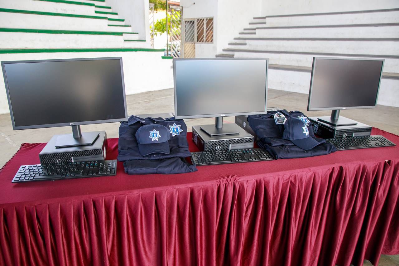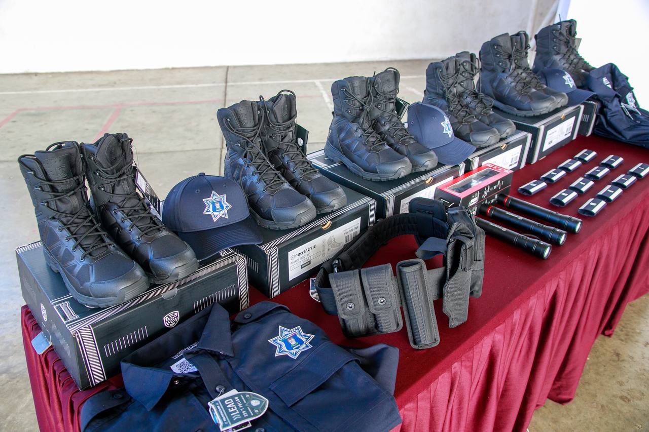 En Armería, se destinaron 883 mil 503 pesos y se entregaron 52 botas, 104 camisas, 52 cinturones, 104 gorras, 104 pantalones, 52 fornituras, 35 lámparas tácticas, 3 computadoras y 12 bastones retráctiles; en Tecomán, la inversión fue de 3 millones 386 mil 269 pesos para entregar 202 botas, 404 camisas, 202 cinturones, 404 gorras, 404 pantalones, 404 insignias, 202 fornituras, 178 lámparas tácticas, 5 computadoras y 41 bastones retráctiles.