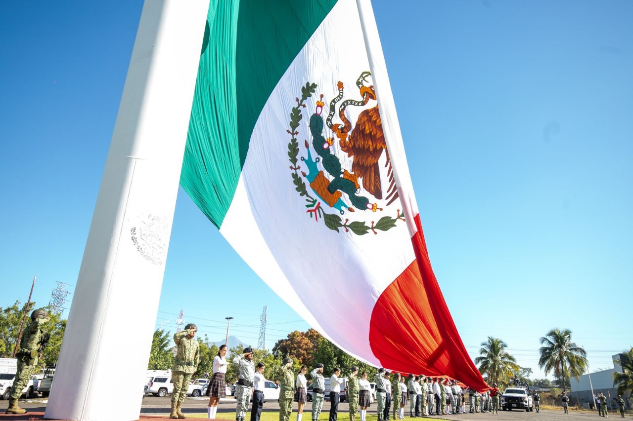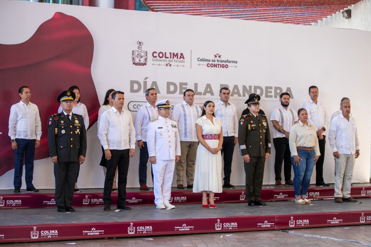 Al encabezar la ceremonia del Día de la Bandera en el Complejo Administrativo de Colima, la mandataria Indira Vizcaíno Silva señaló que, desde los gobiernos estatal y federal, se busca la construcción de una patria más justa y con mayor bienestar.
