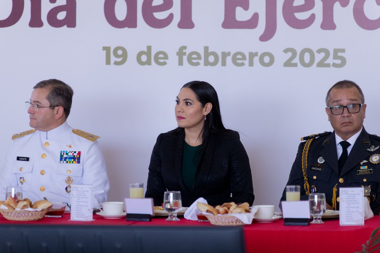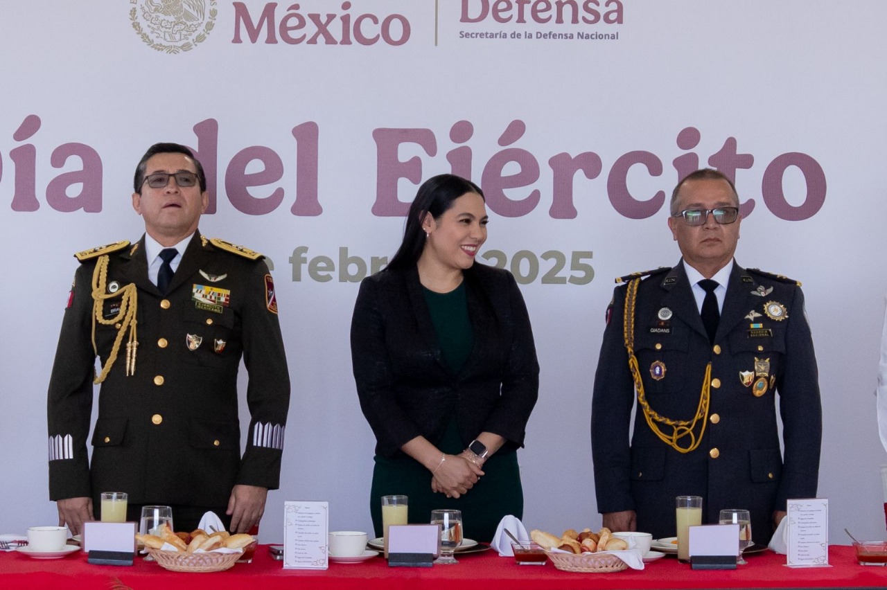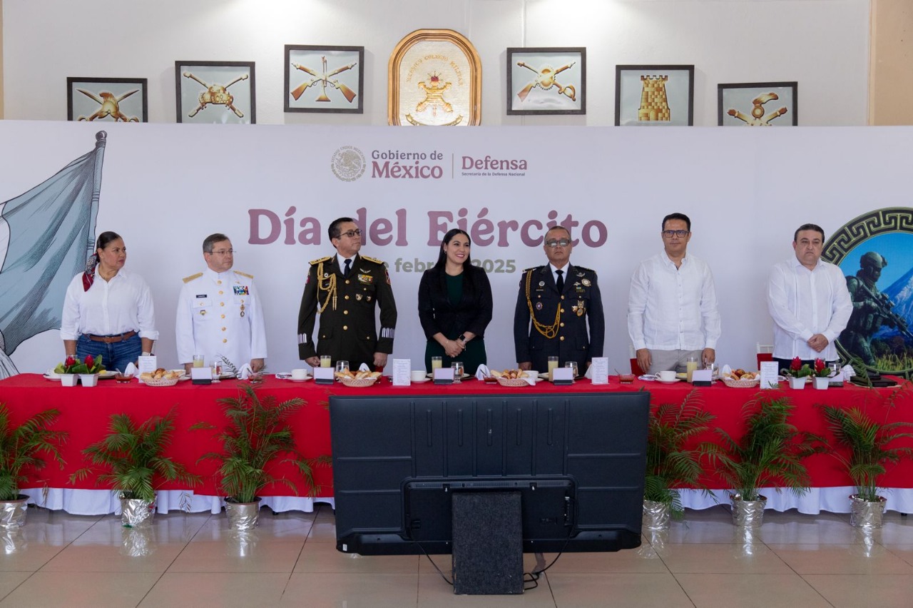 Al encabezar junto con el General Juan Bravo Velázquez, comandante de la 20ª Zona Militar, el desayuno por el Día del Ejército Mexicano, la gobernadora Indira Vizcaíno Silva manifestó que en el estado de Colima conocemos bien la aportación que esta institución hace a nuestra sociedad, pues “en los momentos más complejos el Ejército ha estado para las y los colimenses, no sólo en coyunturas recientes relacionadas con la seguridad, que también reconocemos y agradecemos, sino en todo tipo de situaciones complejas, el pueblo de Colima siempre ha podido contar con el Ejército”.