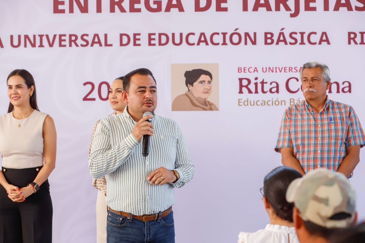 La gobernadora de Colima, Indira Vizcaíno Silva, manifestó que con la Beca Universal de Educación Básica “Rita Cetina” se busca seguir combatiendo la deserción escolar, así lo resaltó este jueves durante la entrega de estos apoyos a estudiantes de la escuela secundaria técnica No. 11 en Manzanillo.