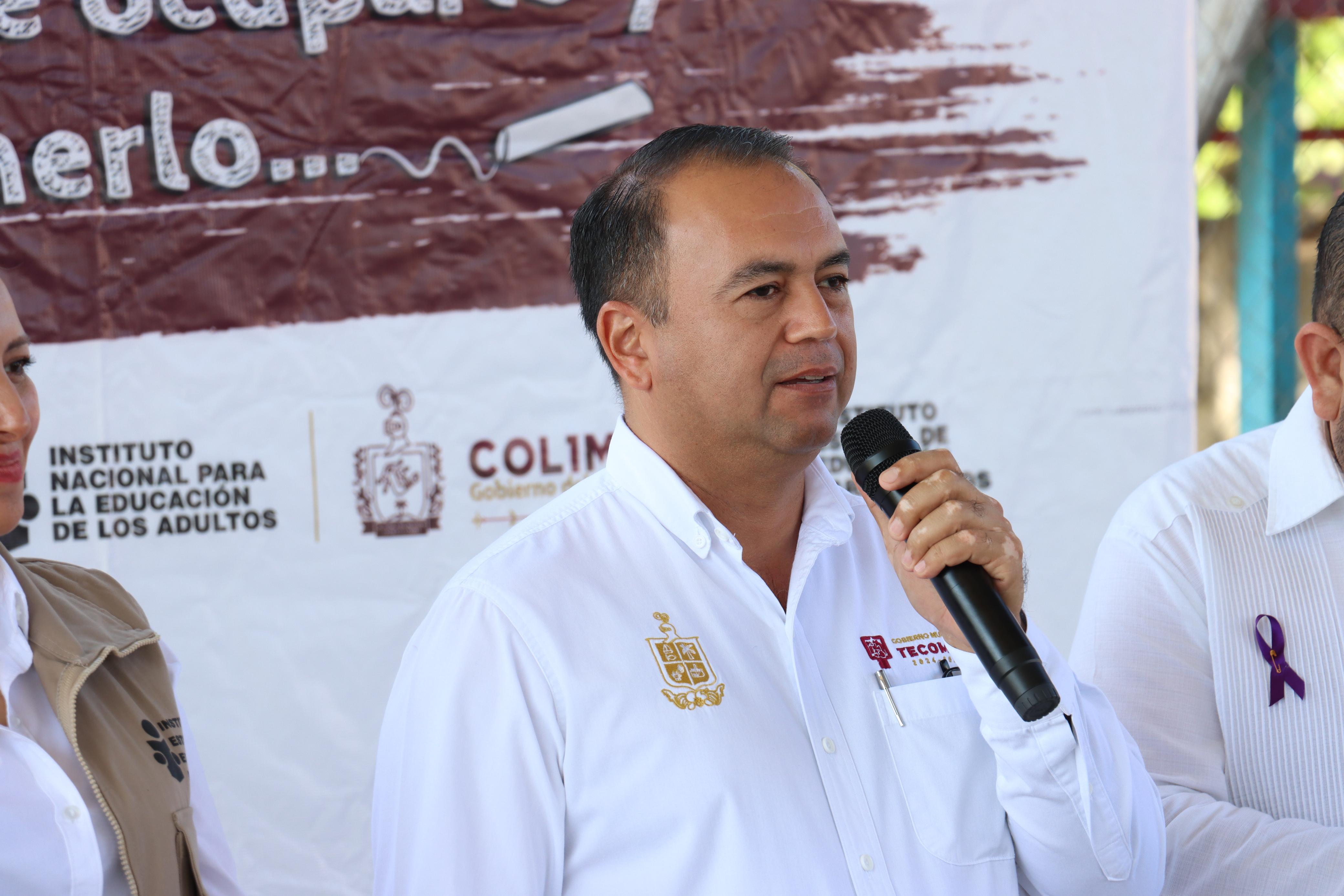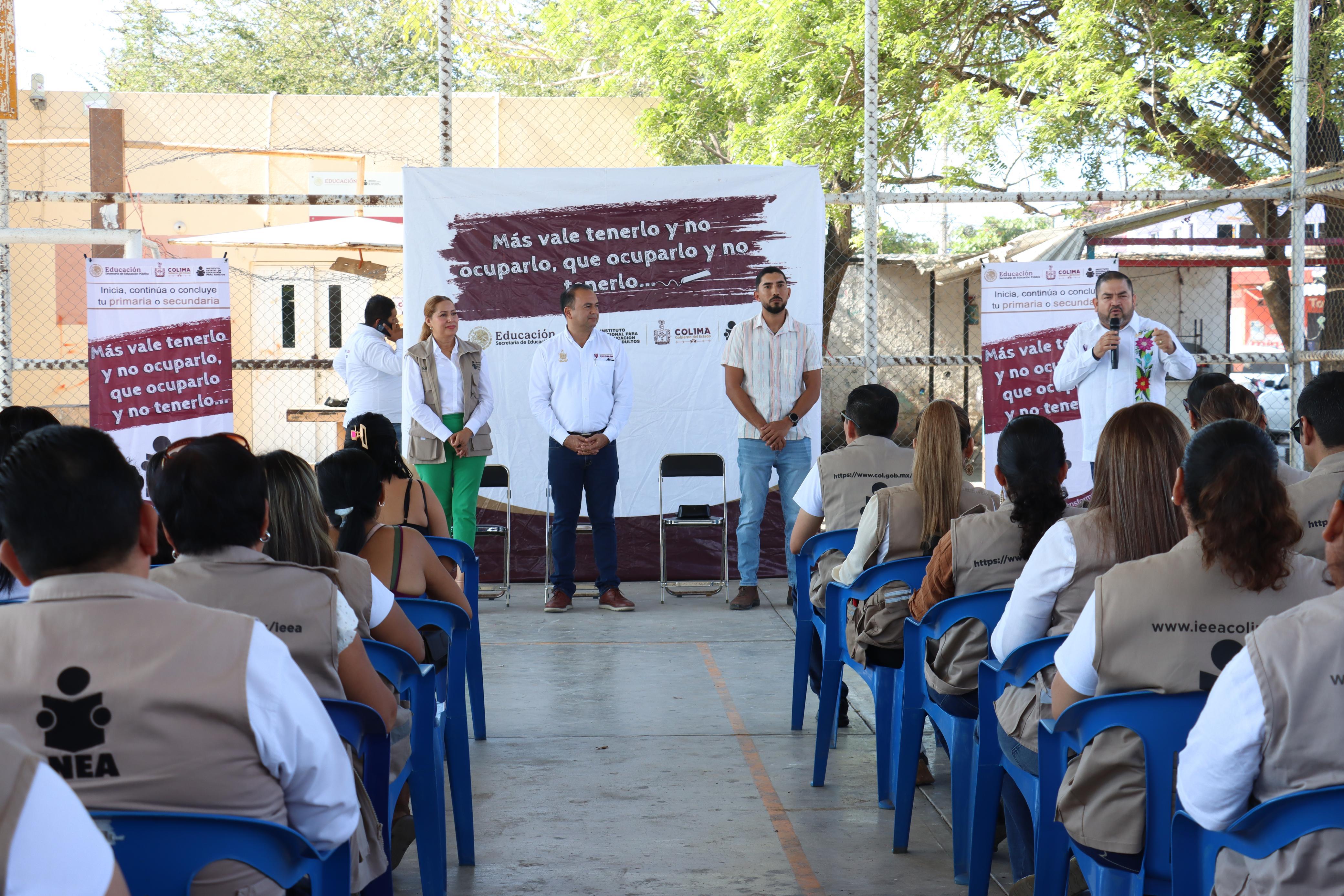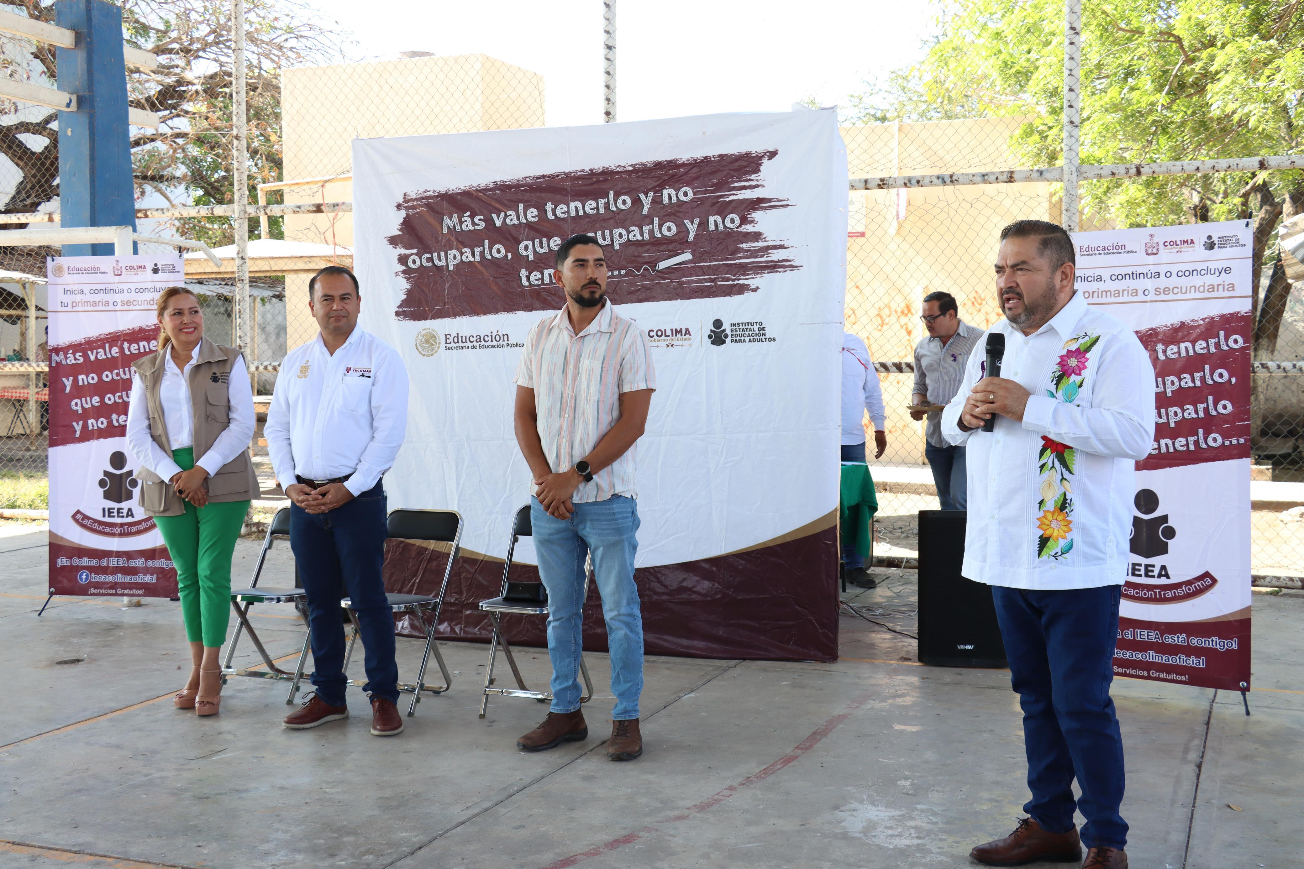 El presidente municipal de Tecomán, Armando Reyna Magaña, asistió este viernes al arranque del programa “Más vale tenerlo y no ocuparlo, que ocuparlo y no tenerlo” en la comunidad de Cerro de Ortega; impulsado por el Instituto Estatal de Educación para Adultos (IEEA).