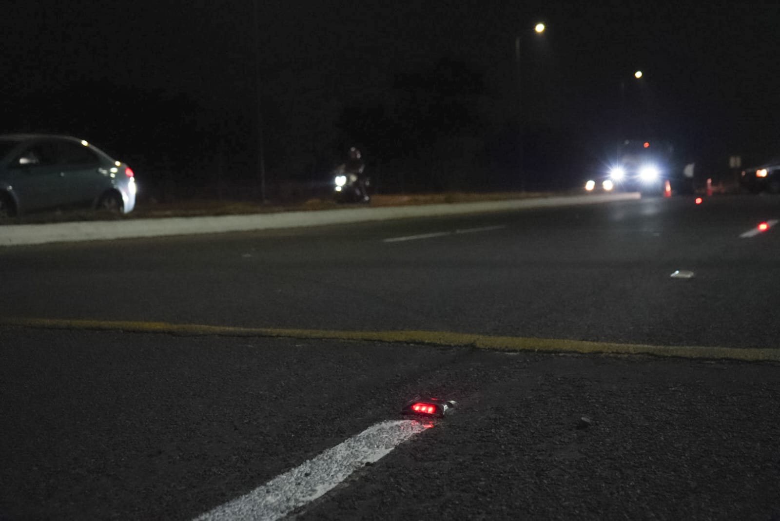 Acompañada por los dirigentes trasportistas Hugo Chávez, Felipe Guerra, Horacio Torres, Jesús García y Juan José Navarro, la Presidenta Municipal entregó 120 vialetas colocadas sobre el asfalto, equipadas con luz de tecnología LED, y cinco señalamientos tipo Chevron, también con luz de tecnología LED, cuyo funcionamiento de ambas es con energía solar.