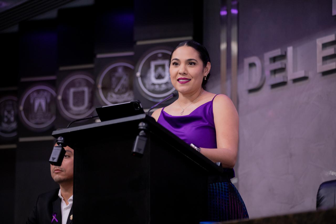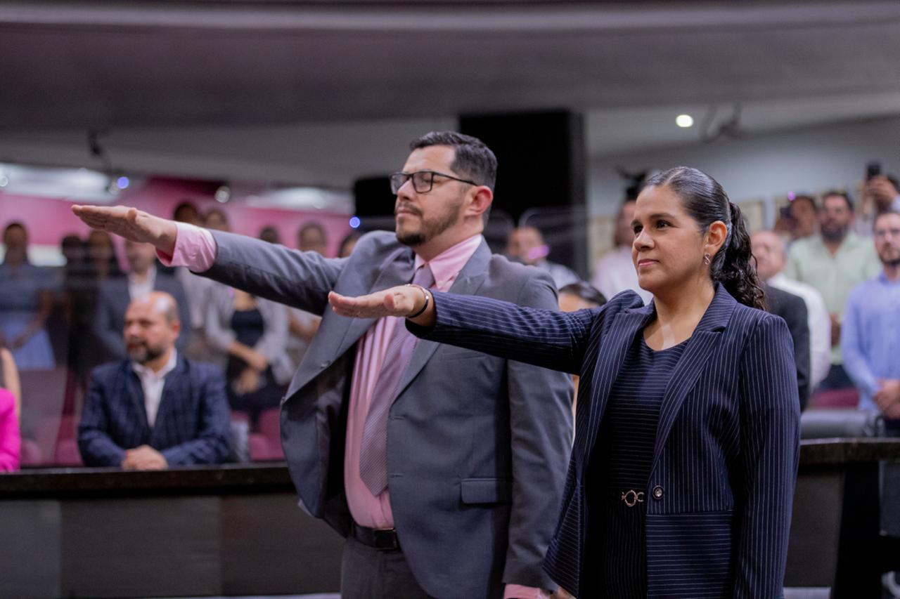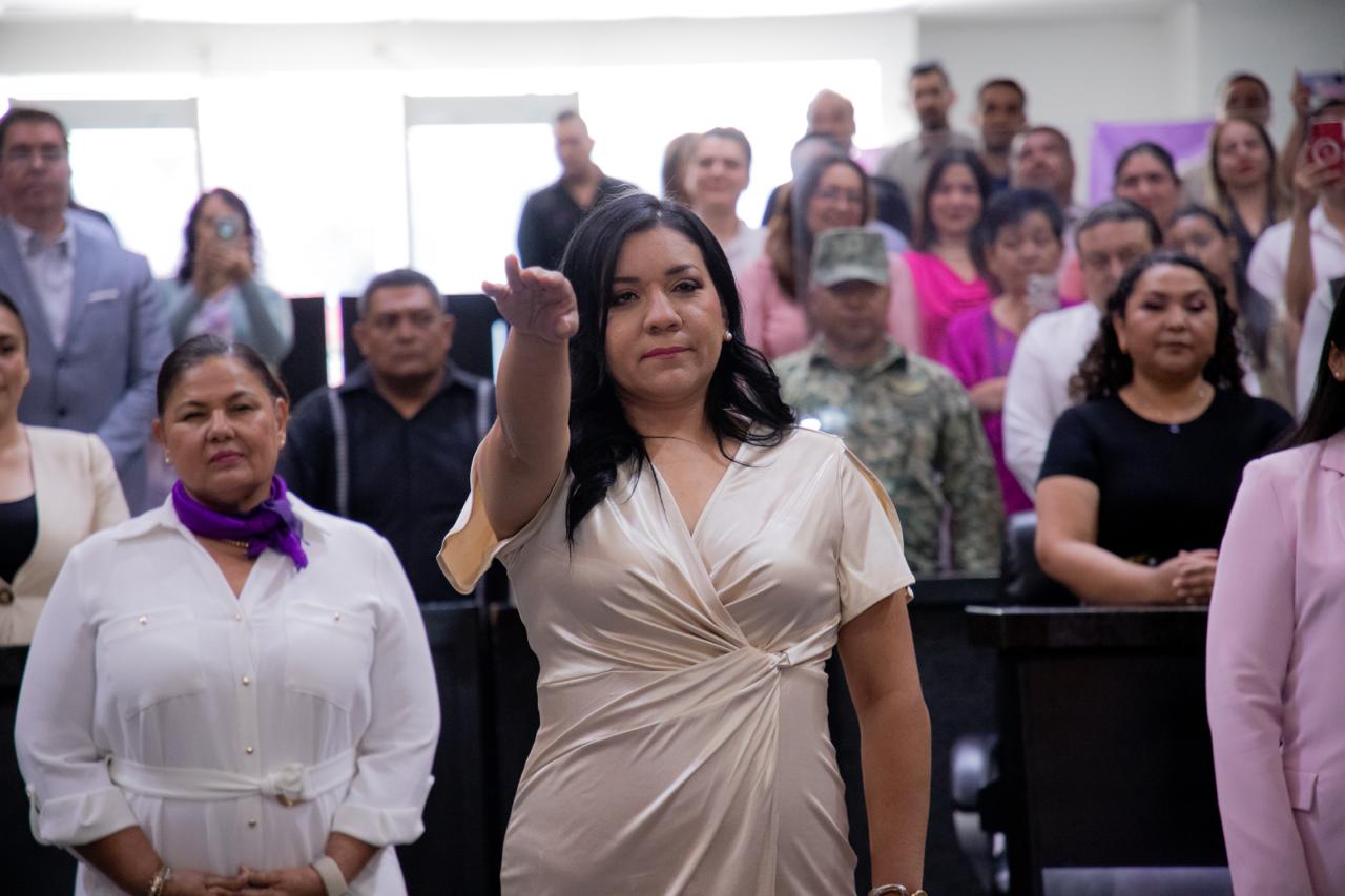 Indira Vizcaíno atestiguó la toma de protestas de estas nuevas magistradas y magistrado, la tarde de este lunes durante la Sesión Extraordinaria Solemne No. 02 del Primer Periodo de Receso del Primer Año de Ejercicio Constitucional en el Congreso del Estado.
