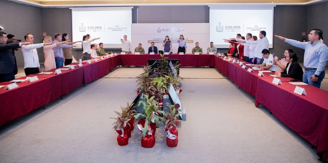 En sesión del Consejo Estatal de Seguridad Pública, este martes en el Centro de Convenciones de Colima, la gobernadora Indira Vizcaíno Silva tomó protesta como nuevos integrantes a las nuevas presidentas y presidentes municipales; ahí la mandataria estatal refirió que éste es el espacio formal para la coordinación y la cooperación interinstitucional en materia de seguridad.